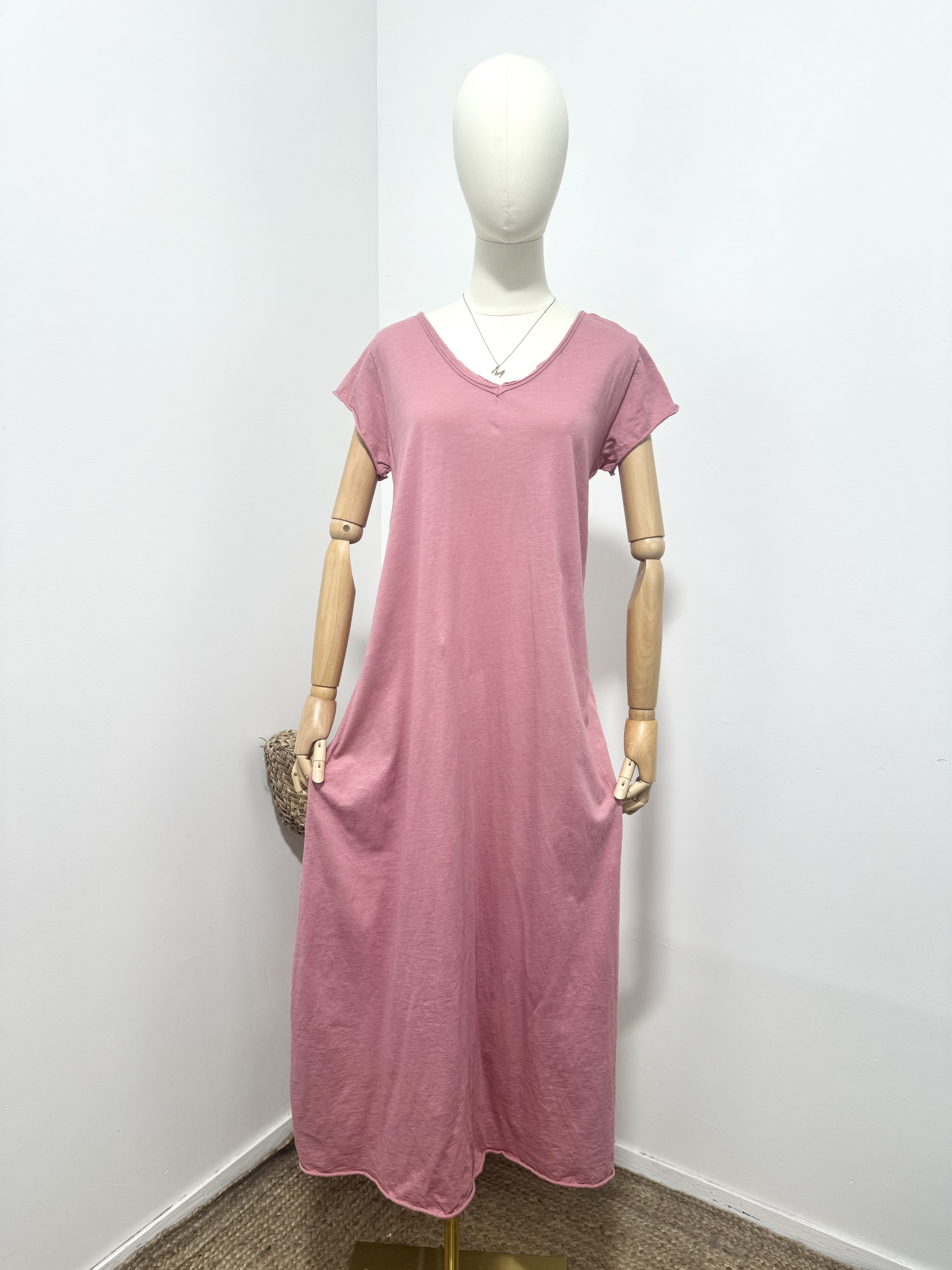 Puur katoen maxi jurk met v-hals – a-lijn – in kleur AS ROZE – luchtig en moderne zomer jurk maat 36