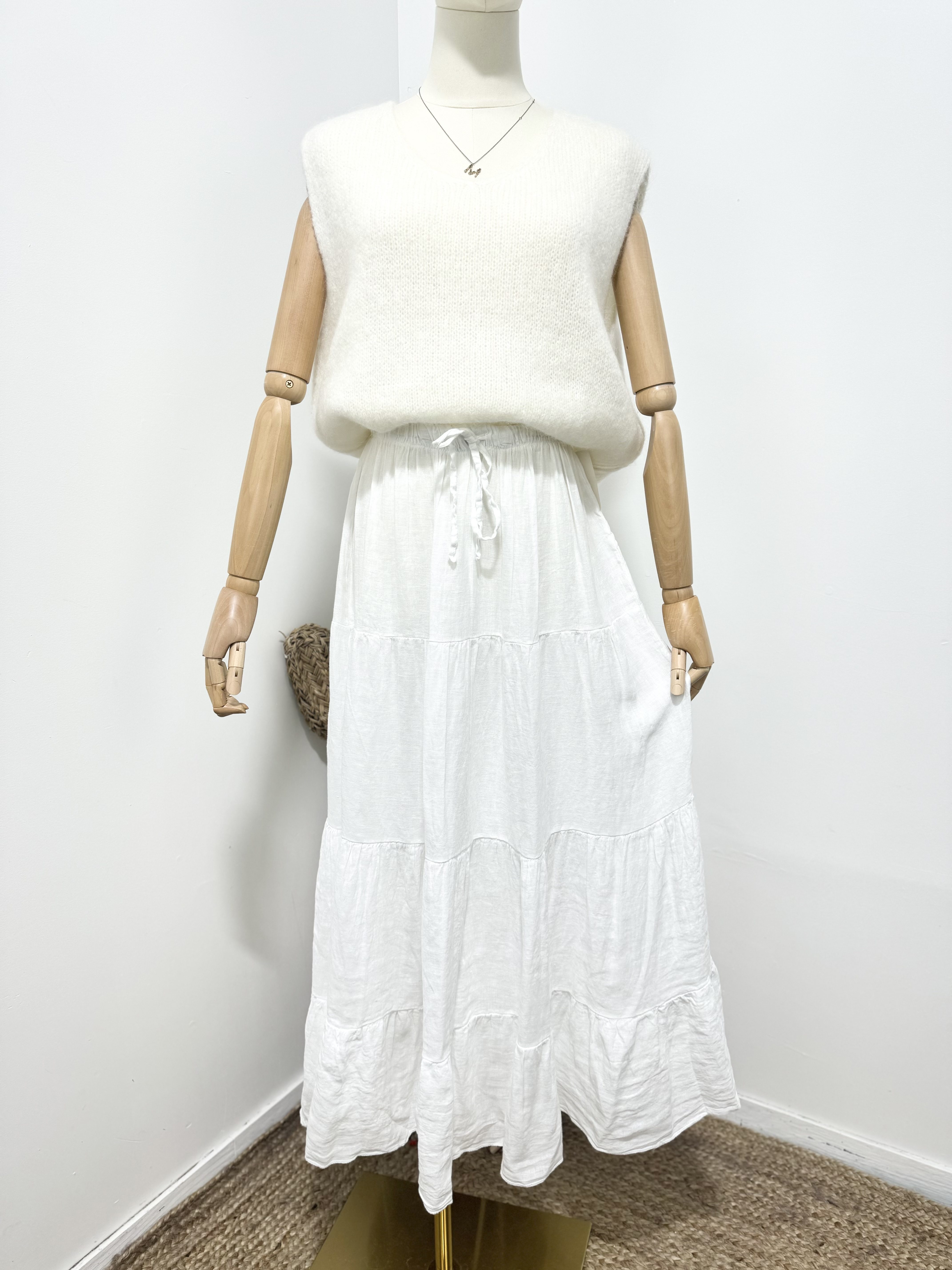 Heerlijke maxi linnen rok – met volants – elastische talie – aantrekkoord kleur WIT – maat 40/42