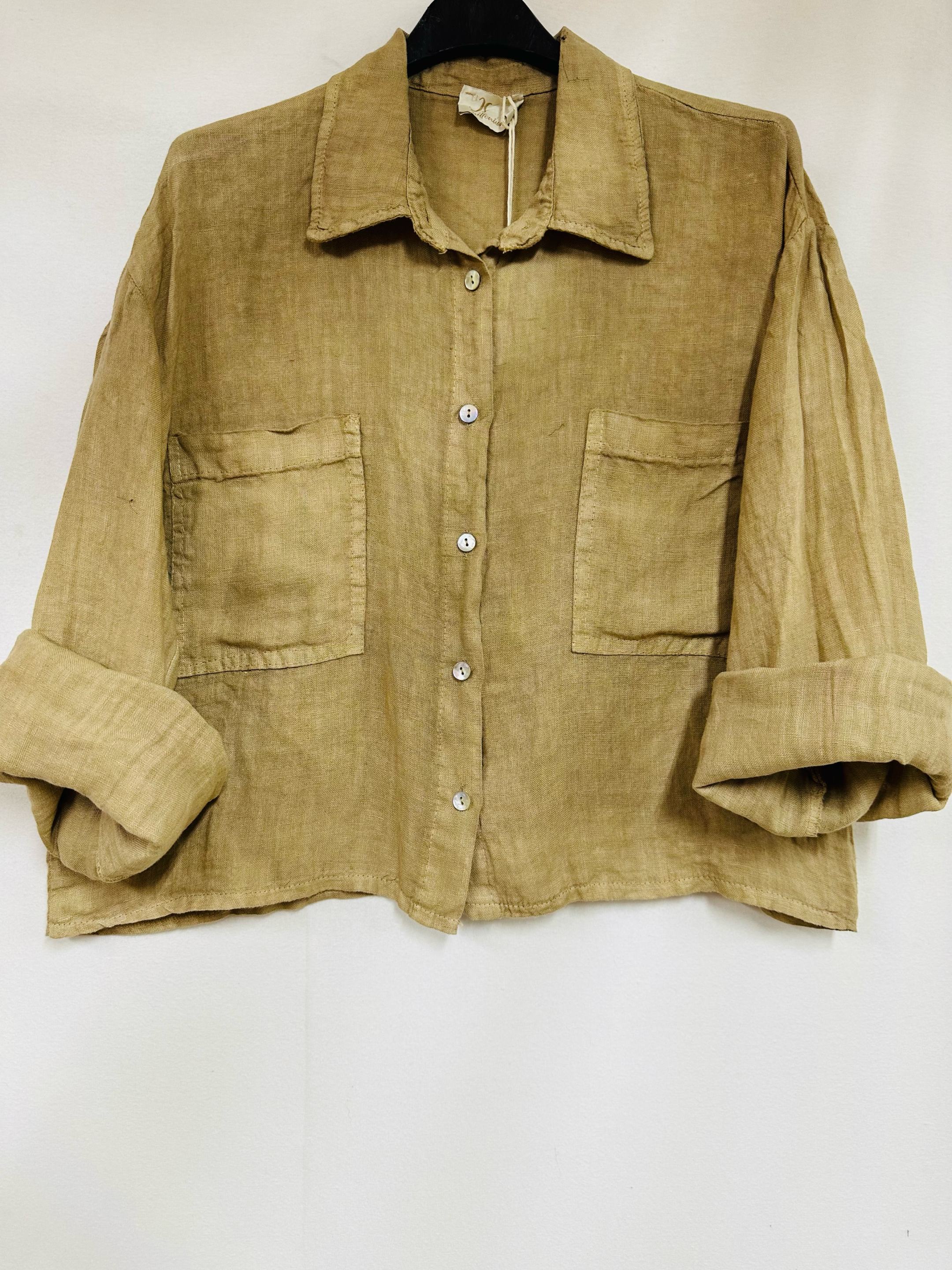 Linnen boho top met vlinder mouwen – broderie voor kant – oversized – korte blouse – CAMEL