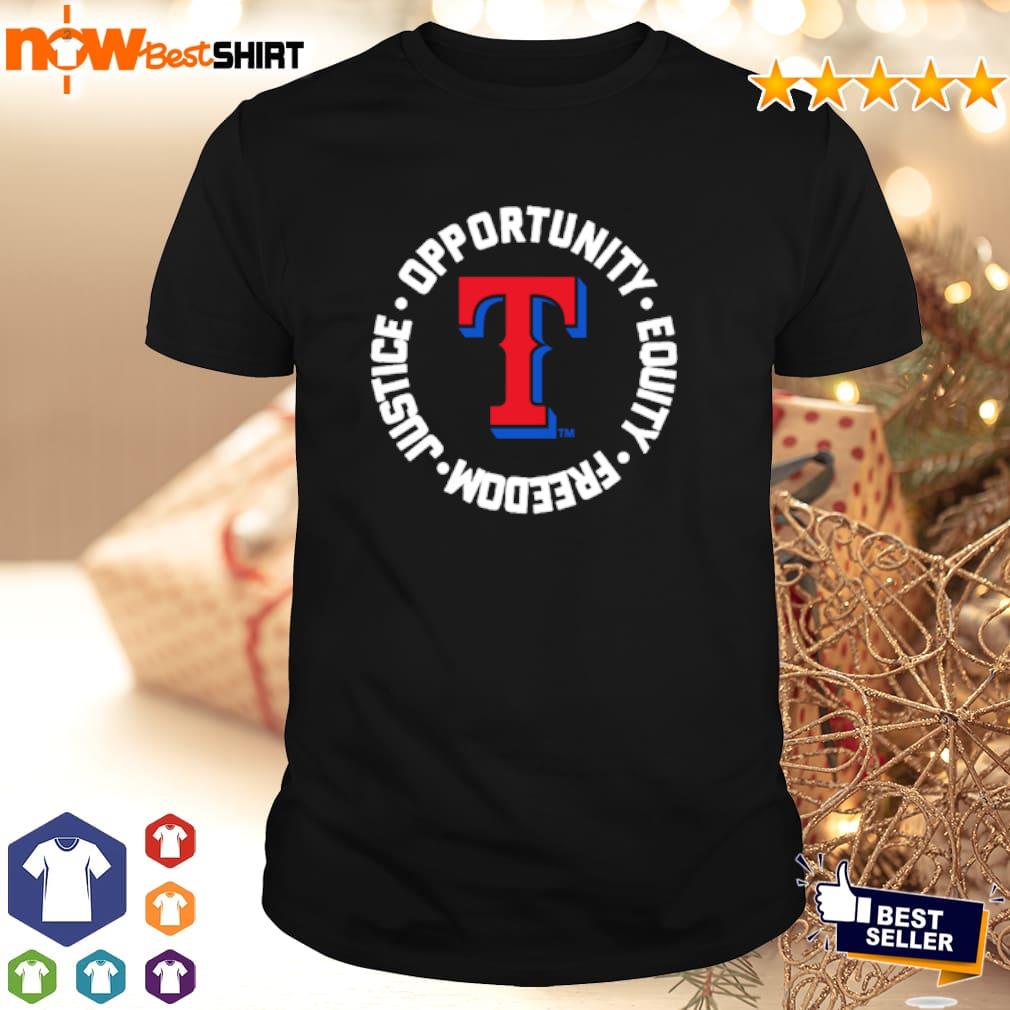 Opportunity equity freedom justice Texas Rangers shirt