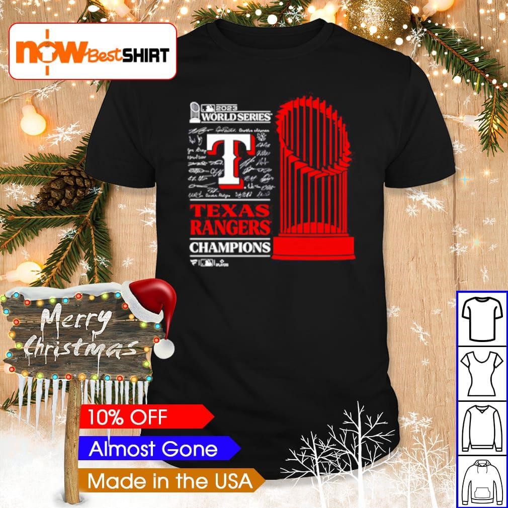 Texas Rangers 2023 World Series Champions Trophy signatures shirt