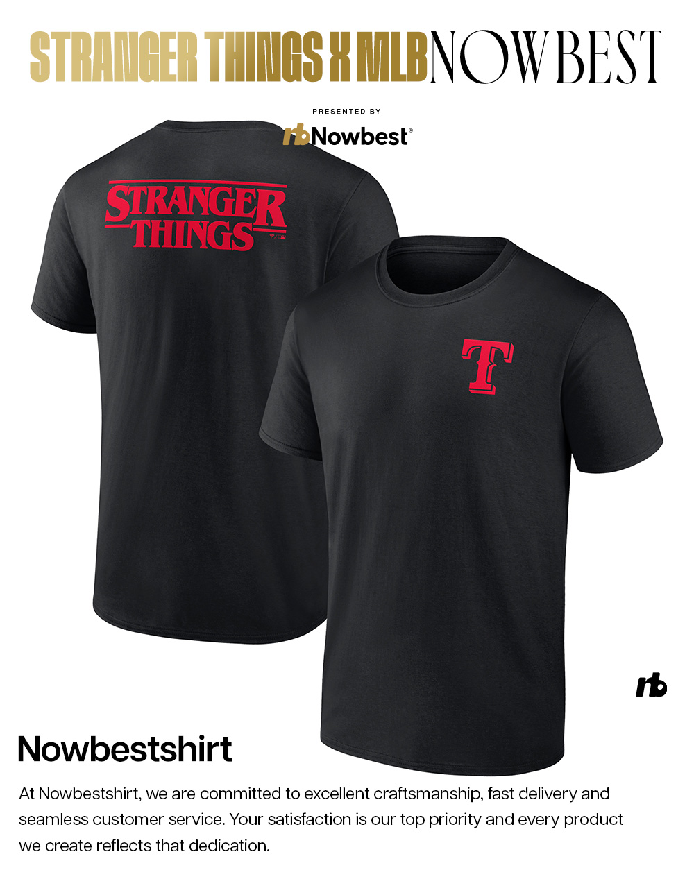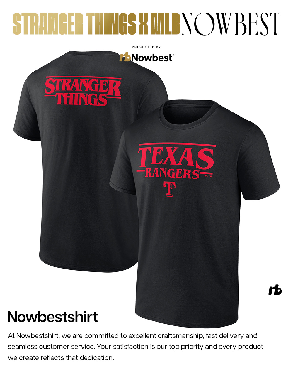 Texas Rangers Stranger Things Logo Lockup 2 sided shirt